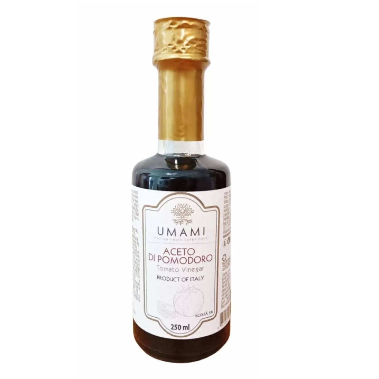 Es werden ausschließlich italienische Tomaten verwendet. Ein fruchtiger Essig mit dem Geschmack von konfierter Tomate, der seinen Platz in allen mediterranen Küchen findet, mit Fleisch, Fisch und reichhaltigen Salaten. Anwendungen: gebratenes, gegrilltes oder gekochtes Fleisch, gegrillter oder gekochter Fisch, gekochtes Gemüse, Salat.