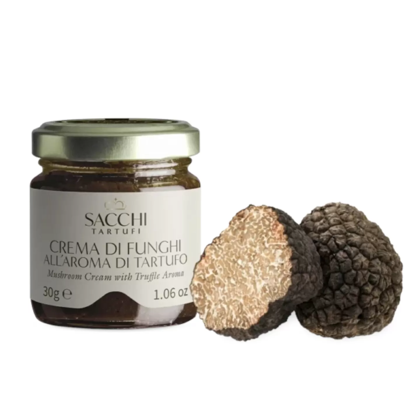 Entdecken Sie die Pilzcreme mit Trüffelaroma von Sacchi Tartufi, eine Würze mit intensivem und umhüllendem Geschmack, die die Reichhaltigkeit der Pilze mit der Eleganz des Trüffels vereint. Perfekt für diejenigen, die ihre Gerichte mit einer Note von Luxus und Raffinesse bereichern möchten.