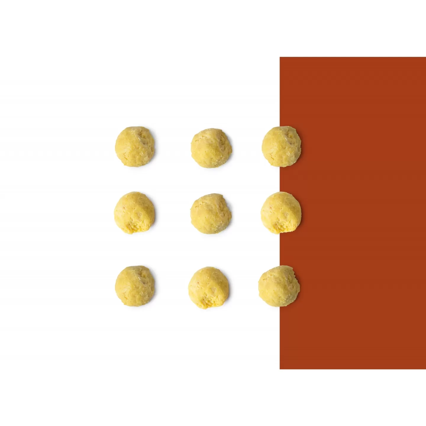 Zutaten: Weichweizenmehl Typ 2, Butter, pasteurisierte frische ganze Eier, geriebener Grana Padano DOP Käse (Milch, Salz, Lab, Konservierungsstoff: Lysozym Eiweiß), pasteurisiertes frisches Eiweiß, Kartoffelstärke, knusprige Getreide-Reis-Cerealien (Getreidemehle 68% (Reis 24%, Weichweizen 22%, Mais %), Zucker, Gerstenmalzextrakt, Salz, Maismehl, Glukosesirup, natürliches Aroma), Salz, Kurkuma, Safran.