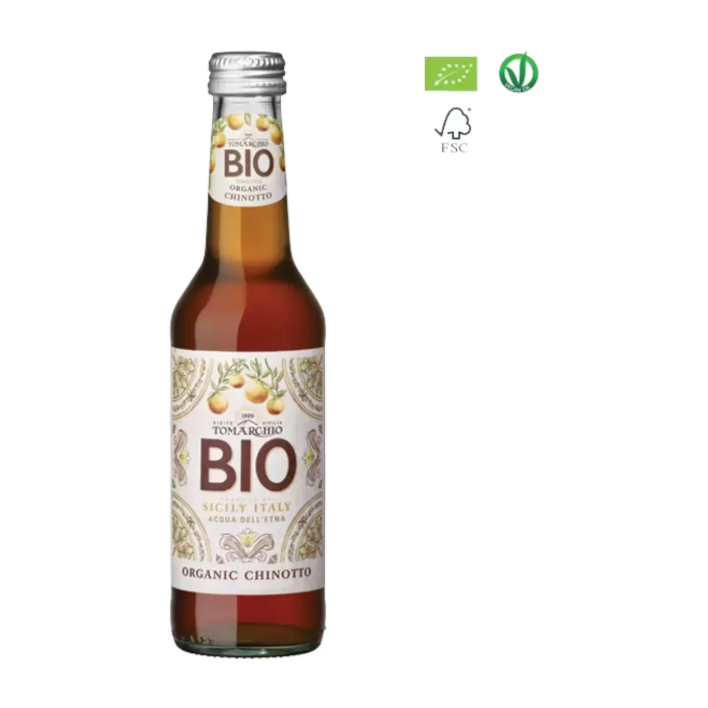 Das Rezept dieses Getränks Tomarchio stammt aus der Mitte des letzten Jahrhunderts und wird auch heute noch, wie damals, mit Chinotto-Extrakt hergestellt. Diese besondere und sehr alte Zitrusfrucht, die typischerweise einen bitter-süßen und kräftigen Geschmack hat, verleiht unserem Getränk seit jeher seinen einzigartigen und unverwechselbaren Geschmack, und ist seit jeher das beliebteste Getränk der Sizilianer.