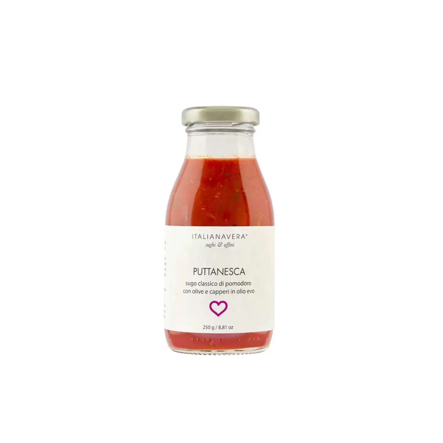 Klassische Tomatensoße mit Oliven und Kapern in extra nativem Olivenöl.