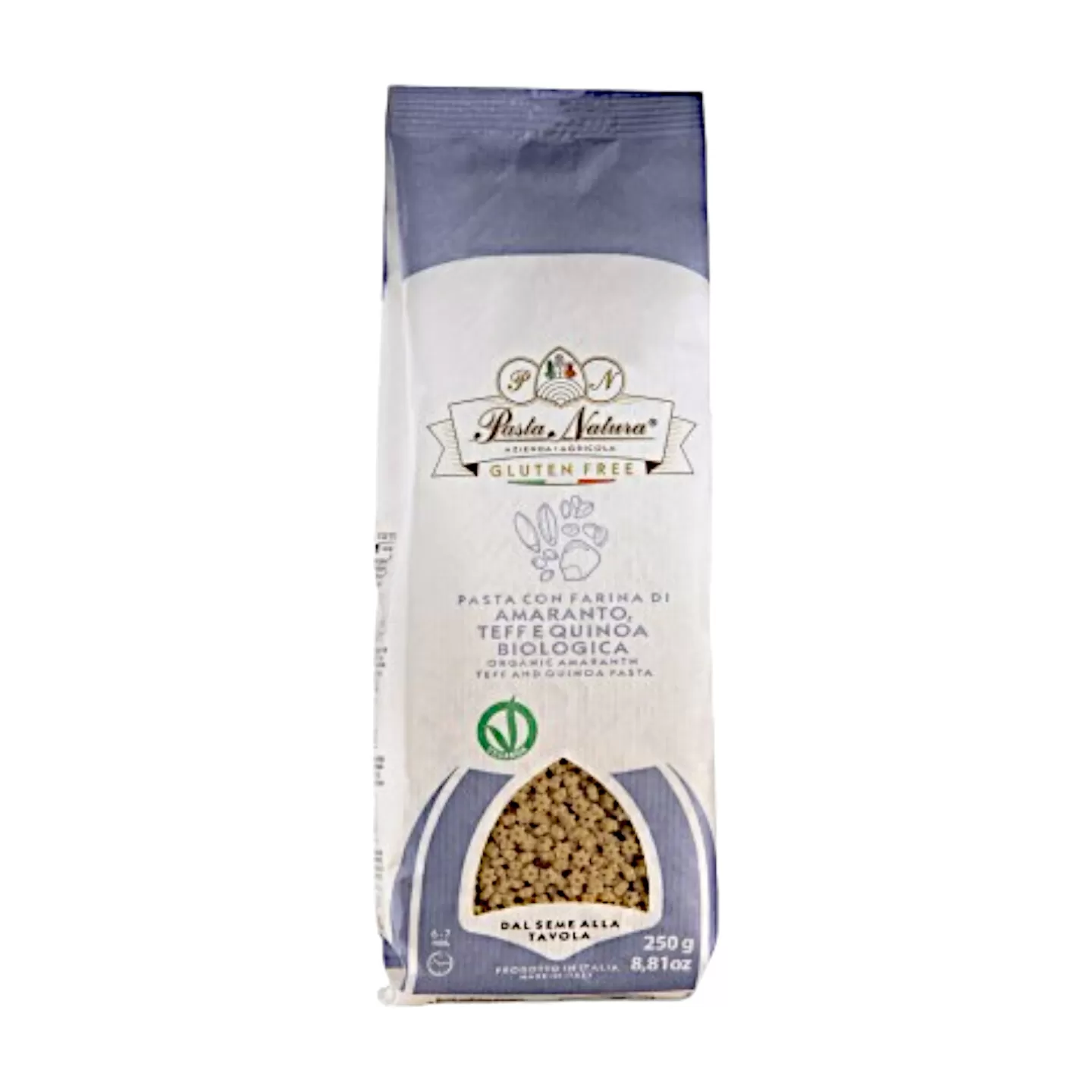 Lecker und nahrhaft, die Pasta aus Teff-, Amaranth- und Quinoamehl von PASTA NATURA ist eine perfekte Spezialität für diejenigen, die eine gesunde Alternative zur traditionellen Pasta auf den Tisch bringen möchten. Die Farbe der Pasta ähnelt der Vollkornpasta, der Geschmack ist schmackhaft, aber nicht aufdringlich. Dank der Bronze-Ziehtechnik und langsamen Trocknung bei niedrigen Temperaturen erfüllt die Pasta aus Teff-, Amaranth- und Quinoamehl alle Voraussetzungen, um großartige Gourmetgerichte zu kreieren. PASTA NATURA mit Amaranth-, Teff- und Quinoamehl ist ein Konzentrat an gesunder Energie, glutenfrei und ohne tierische Inhaltsstoffe. Sie ist geeignet für Sportler und alle, die in einem guten Pastagericht einen ausgewogenen Beitrag an Proteinen und komplexen Kohlenhydraten mit niedrigem glykämischen Index suchen. Der Proteinanteil wird vor allem durch das Amaranthmehl bereitgestellt, einen hervorragenden Ersatz für tierische Proteine, während die komplexen Kohlenhydrate aus dem Teffmehl stammen. Die essentiellen Aminosäuren, unsere Verbündeten im Kampf gegen Cholesterin, finden sich hauptsächlich im Quinoamehl. Amaranth ist zudem reich an Kalzium, Phosphor und Eisen. Dank Teff versorgt es den Körper mit hohen Mengen an Ballaststoffen, Kalzium, Kalium, Thiamin, Niacin und Vitamin B6.