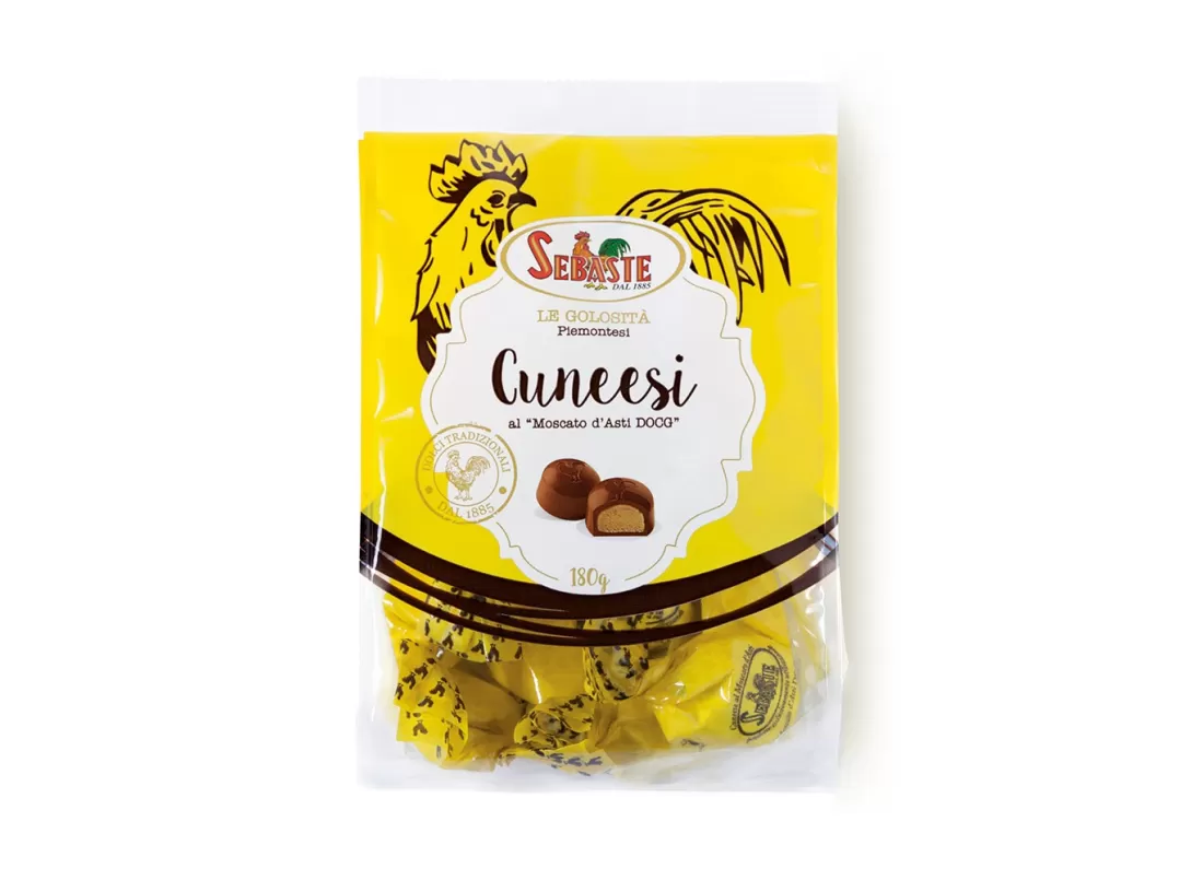 Traditionelle Milchschokoladenpraline mit Moscato-Cremefüllung – Beutel mit Standboden