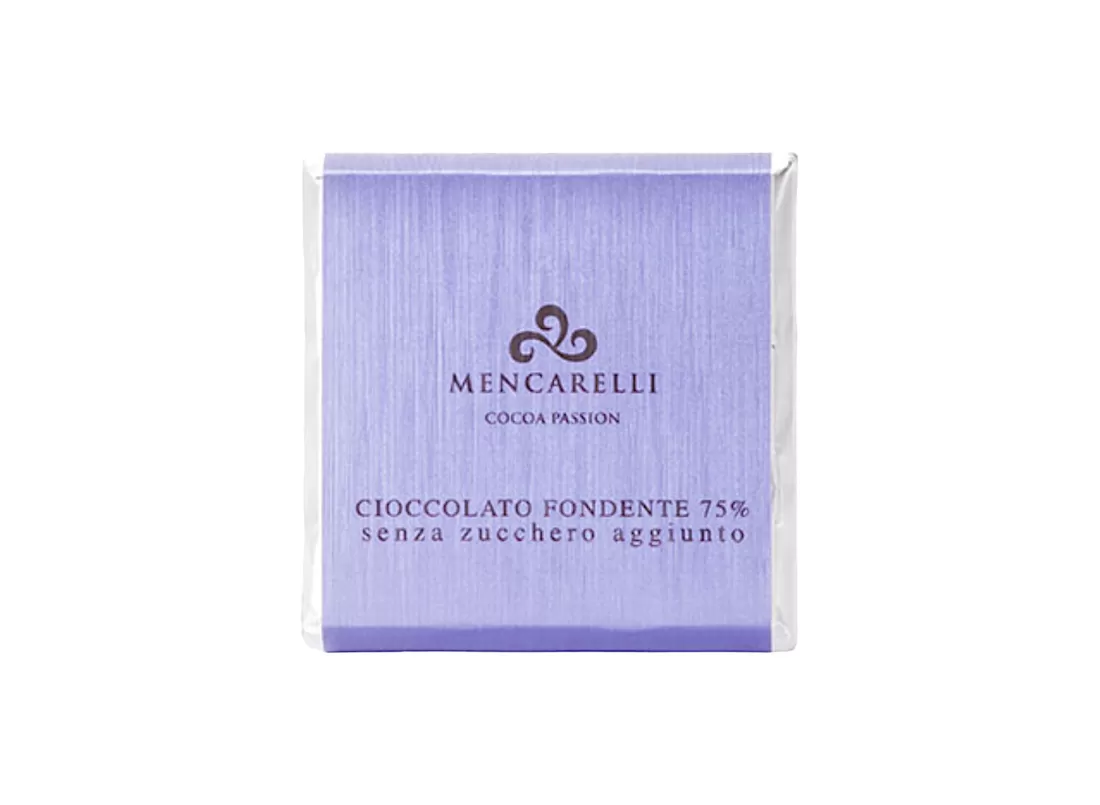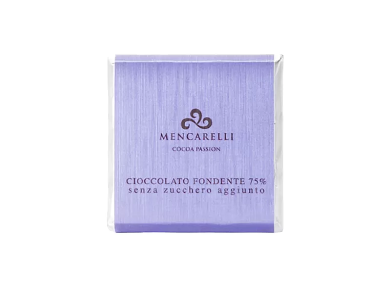 Diese 50-Gramm-Tafel, meisterhaft hergestellt von Mencarelli, bietet einen kräftigen und umhüllenden Geschmack mit einem Kakaoanteil von 75%