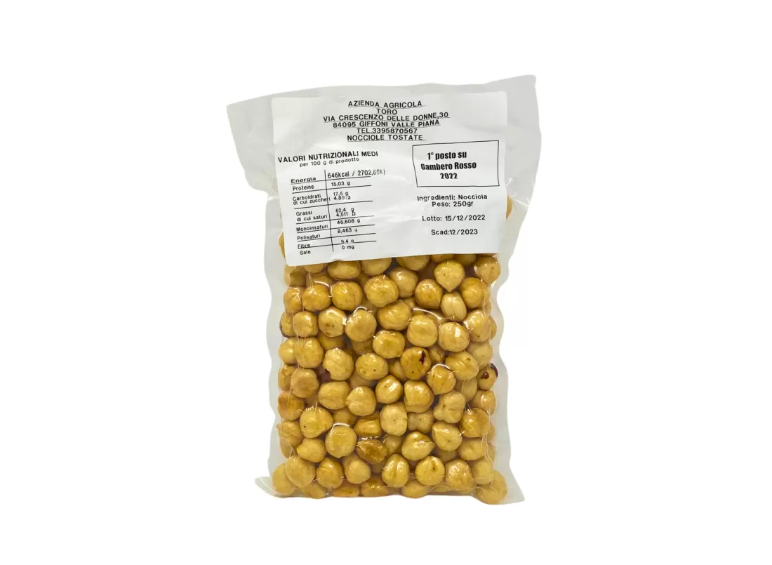 Reich an Nährwerten, sind die IGP Haselnüsse von Giffoni eine hervorragende Quelle für Vitamine, Mineralien und gesunde Fette. Sie sind perfekt als Snack, zur Bereicherung von Süßspeisen, Salaten oder herzhaften Gerichten geeignet. Das Rösten hebt den natürlichen Geschmack der Haselnüsse hervor, macht sie knackig und köstlich. Sich für die gerösteten IGP Haselnüsse von Giffoni der Azienda Agricola Toro zu entscheiden, bedeutet, sich für ein gesundes, echtes und hochwertigstes Produkt zu entscheiden, ideal für diejenigen, die das Beste aus der Natur suchen.