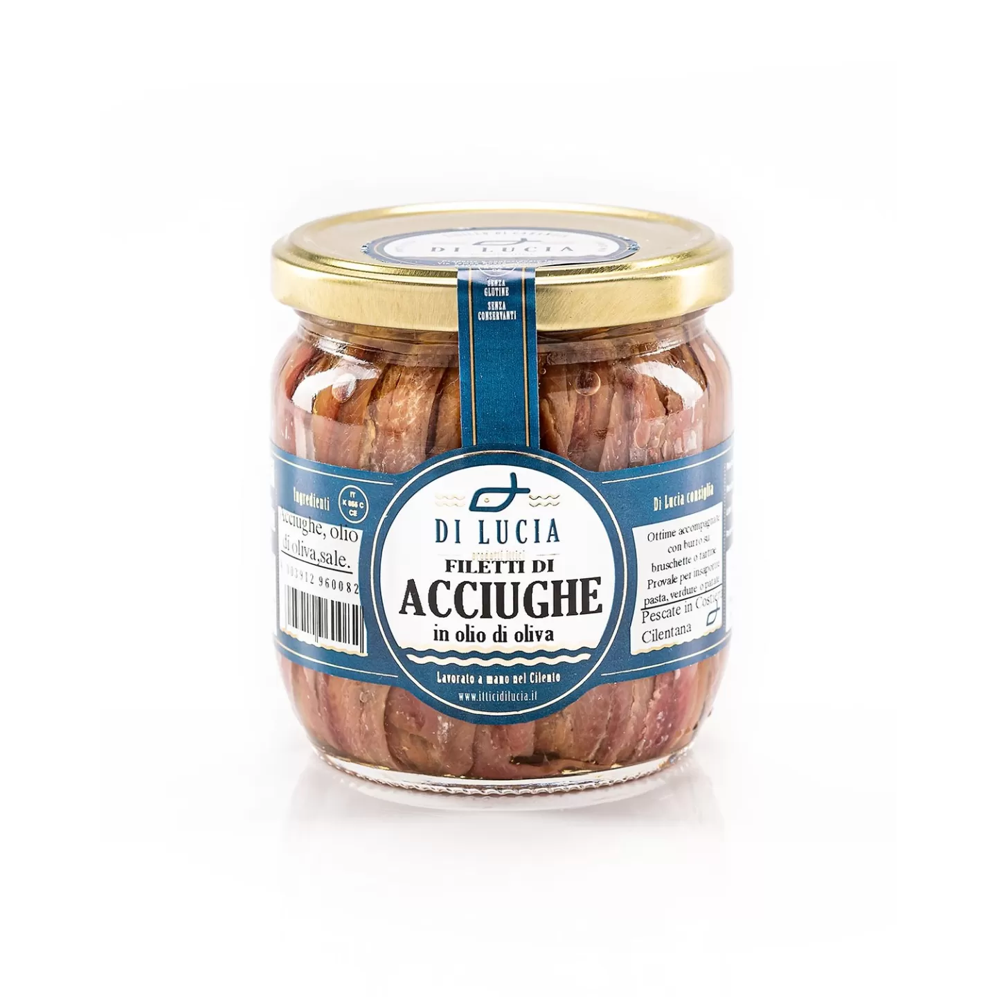 Anchovy fillets in olive oil are a seafood specialty of Ittici Di Lucia.