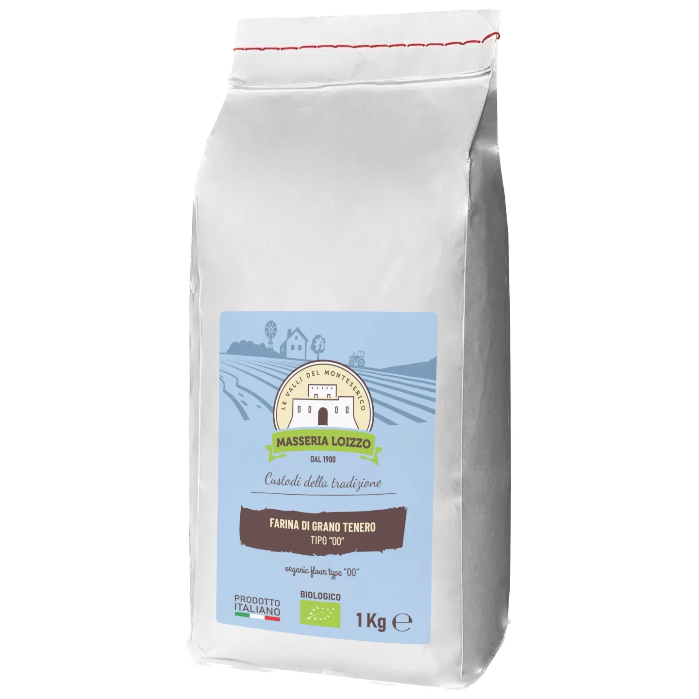 The "00" soft wheat flour (Masseria Loizzo) is produced using only Italian wheat grains from organic farming and is obtained from the heart of the grain, ensuring the maximum quality and purity of the product. Thanks to its refinement, the flour is extremely white as it is deprived of the cuticle and other external substances of the kernel. This type of flour is incredibly versatile and is used in many recipes, such as fresh pasta, brioches, panettoni, crepes, creams, bread, and pizza.