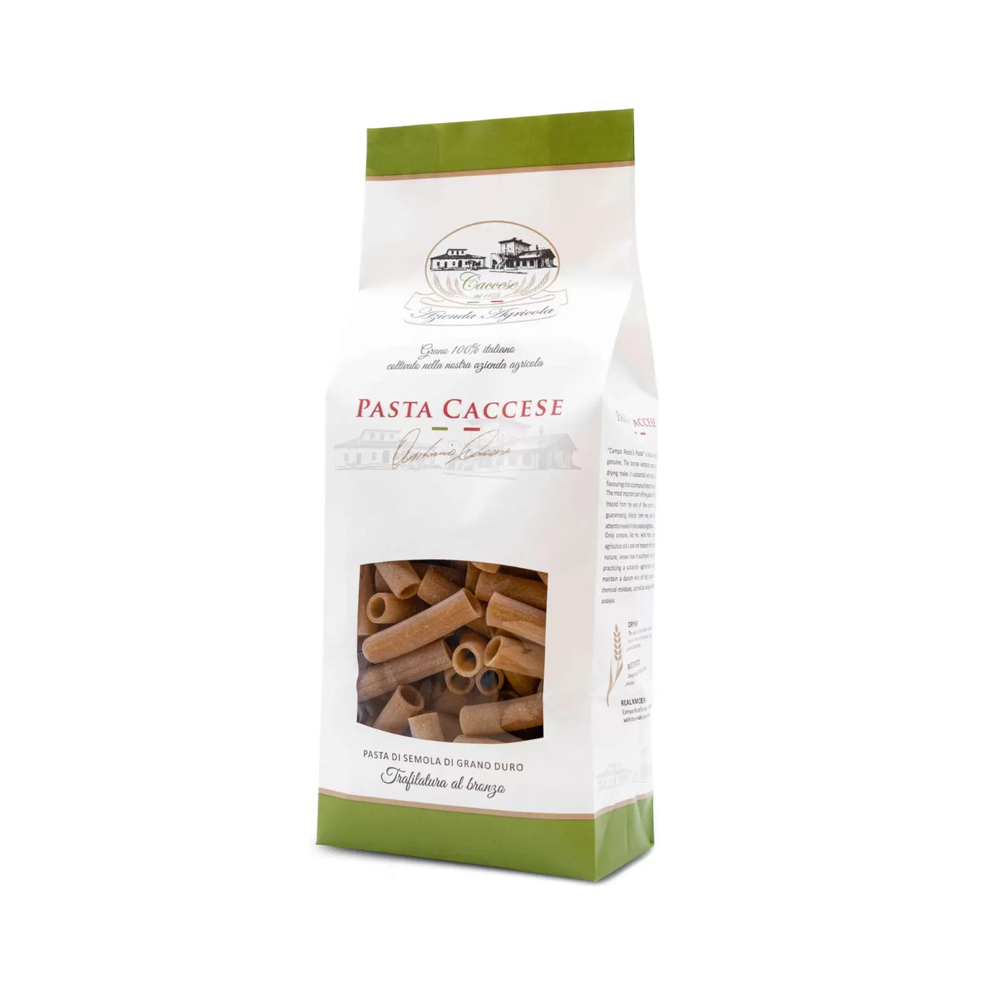 Discover Pasta Caccese's Whole Wheat Maccheroncini, made from 100% whole durum wheat semolina grown on our farm. Ideal for those who love high-quality pasta, bronze-drawn and free from chemical residues, perfect for healthy and nutritious dishes.