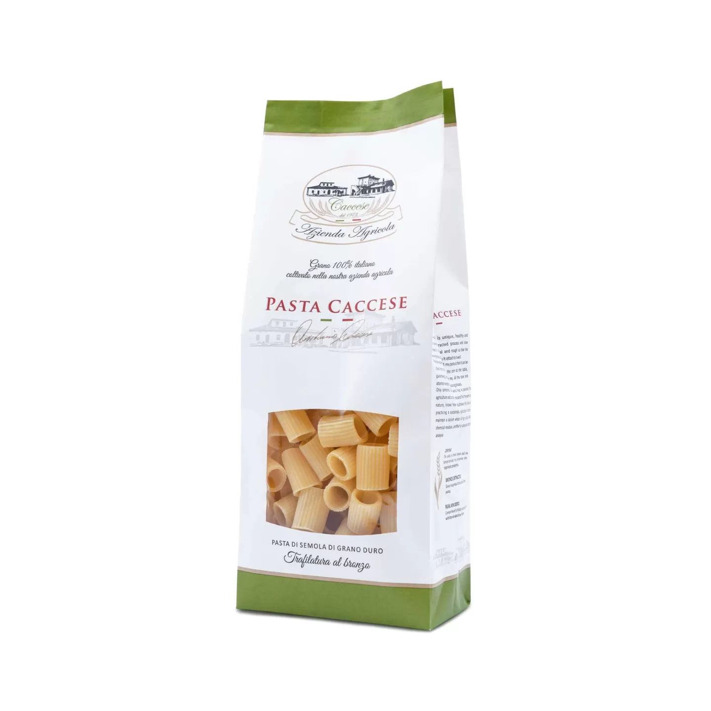 Discover Pasta Caccese's Mezze Maniche Rigate, made from 100% durum wheat semolina. Ideal for those who seek high-quality pasta, bronze-drawn and free from chemical residues, perfect for holding sauces.