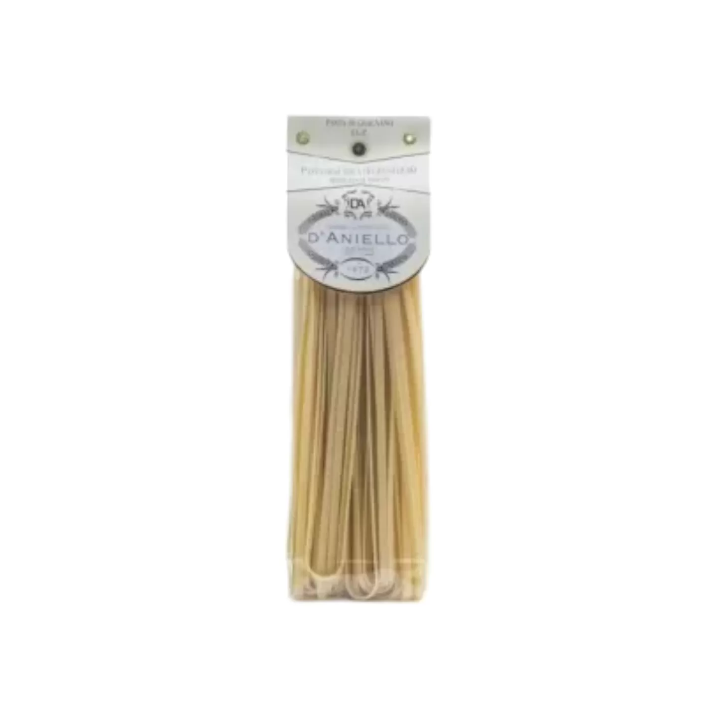 The Tagliatelle, Gragnano PGI pasta from the D'Aniello factory, are obtained from the mixture of durum wheat semolina with water from the local aquifer, characteristics also specified in the I.G.P. PASTA OF GRAGNANO.