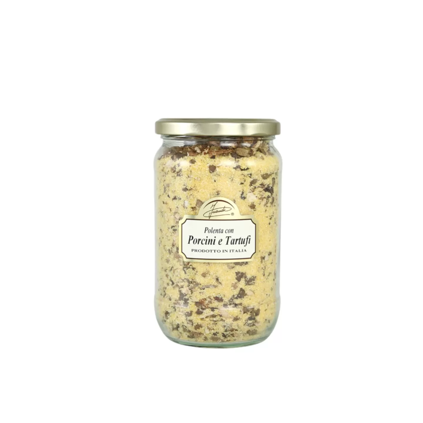 Discover Inaudi's polenta with truffles and porcini mushrooms, a premium product that blends the traditional flavors of cornmeal with the distinctive taste of porcini mushrooms and truffles. Ideal for quick gourmet meals, this polenta is perfect for those seeking a unique and rich culinary experience. Buy it to prepare an exquisite dish that will delight your guests.