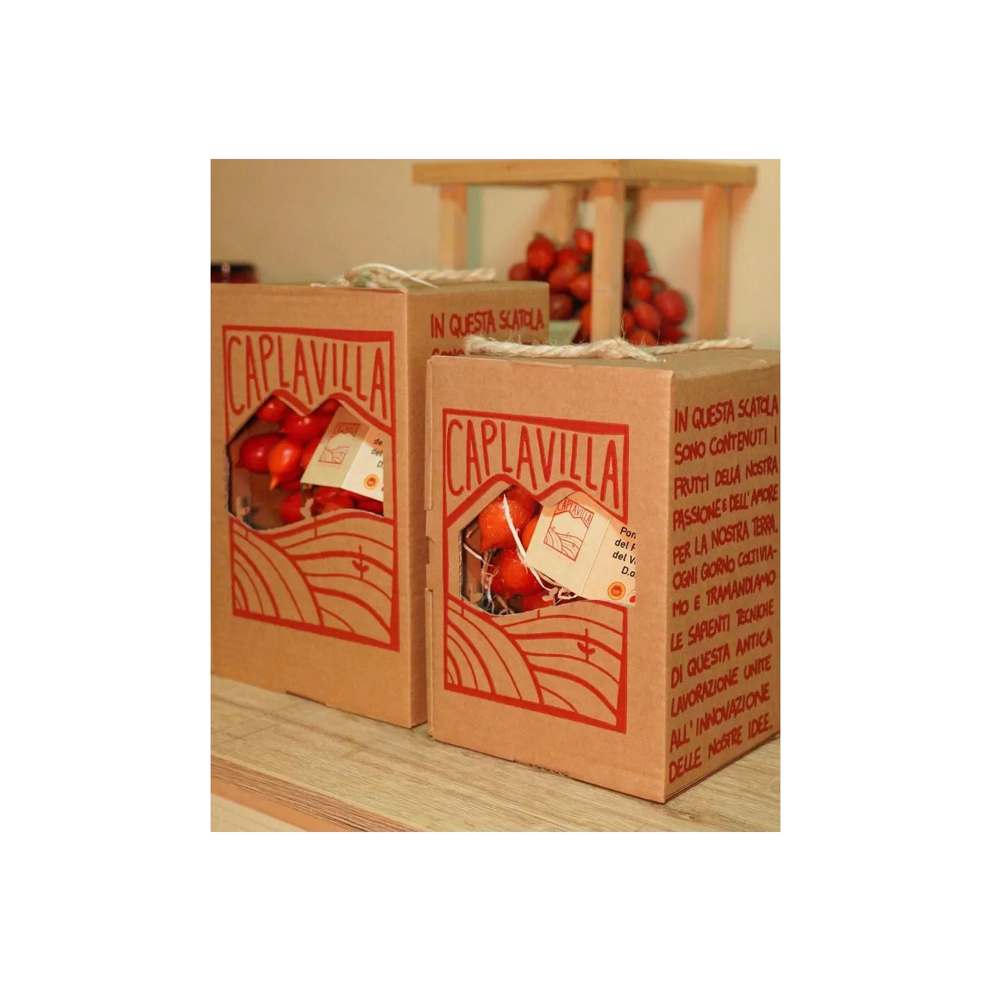 These tomatoes are oval-shaped with a distinctive pointed tip and are celebrated for their thick skin and firm flesh. Cultivated in the mineral-rich volcanic soil, they offer a uniquely sweet flavor with a subtle bitter aftertaste. Piennolo tomatoes are perfect for enhancing pasta dishes, seafood sauces, and pizzas
