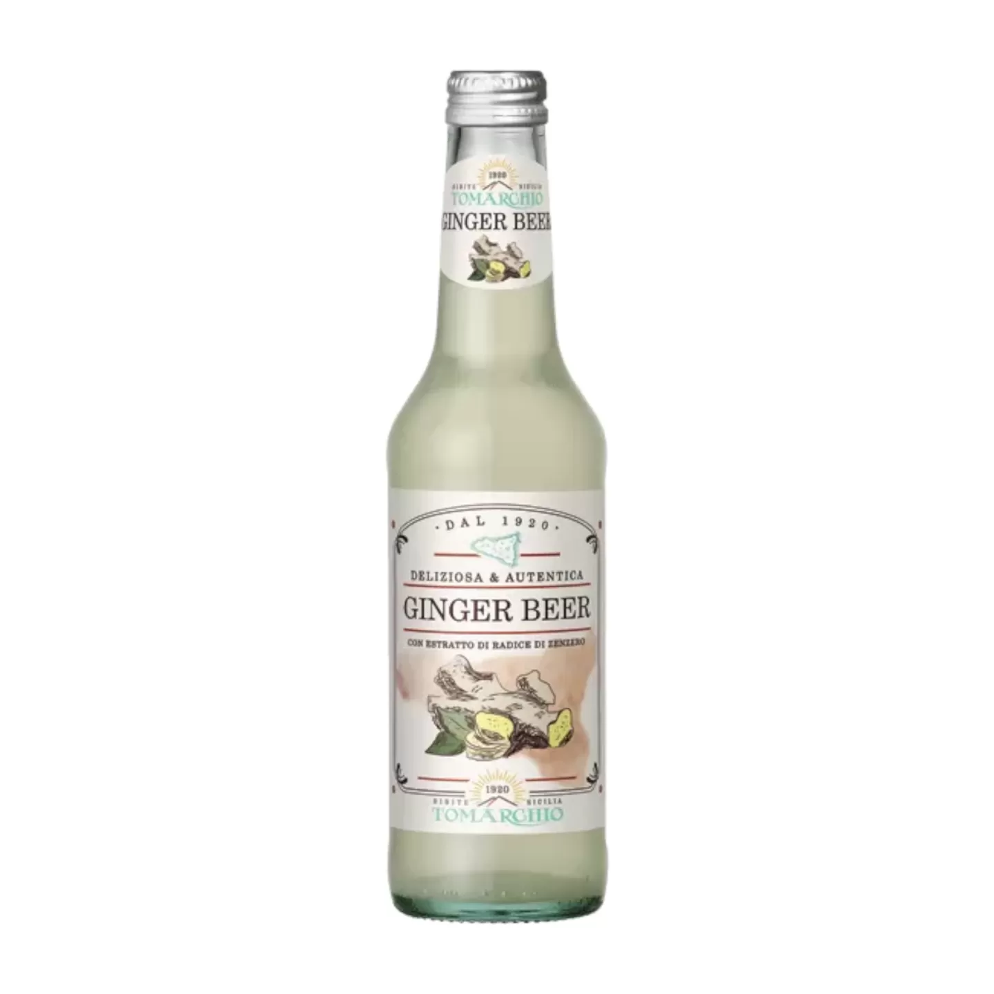 Tomarchio's Ginger Beer is a drink with an enveloping taste characterized by a pungent note of ginger. In the water of Etna. With ginger root extract.