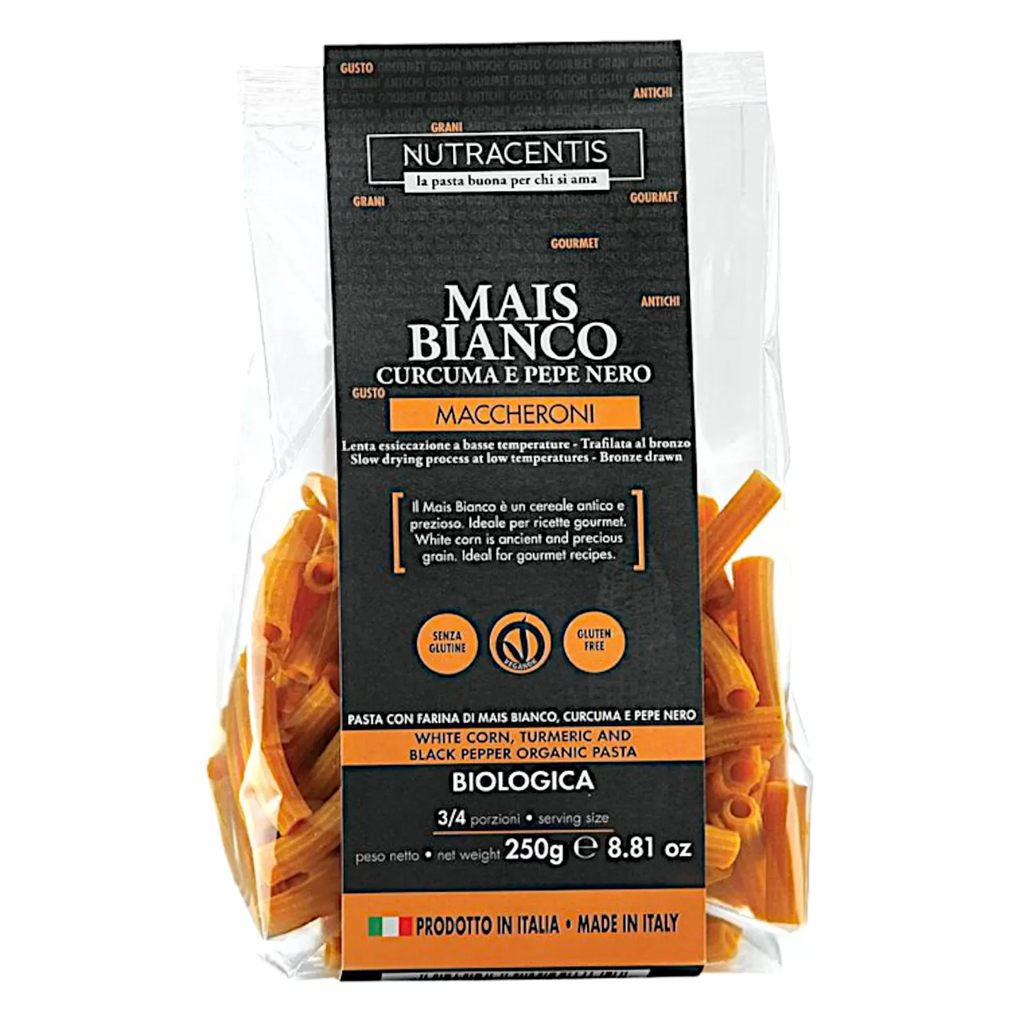 Organic Gluten Free Pasta with White Corn, Turmeric and Pepper - Maccheroncini