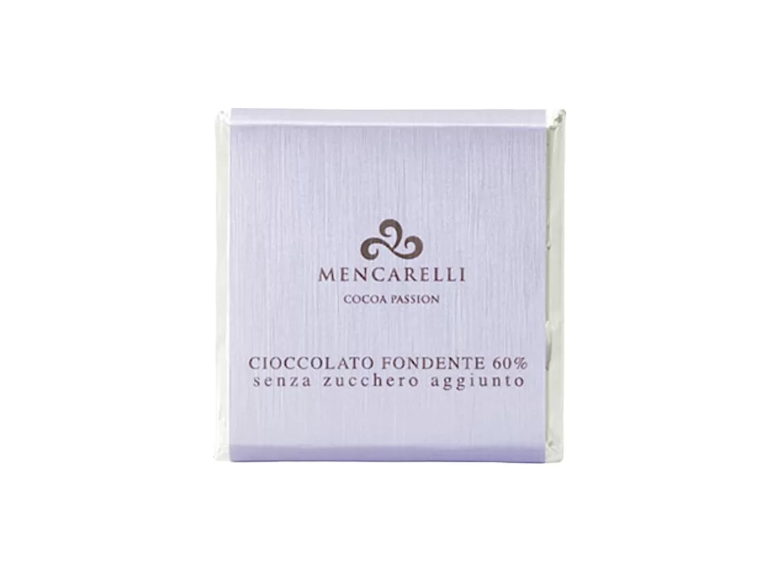 An indulgent option for sugar-free chocolate enthusiasts, this 50-gram bar, expertly crafted by Mencarelli, offers a rich and enveloping taste with a 60% cocoa content. A delightful choice for those who want to savor the depth of dark chocolate without compromising on pleasure.