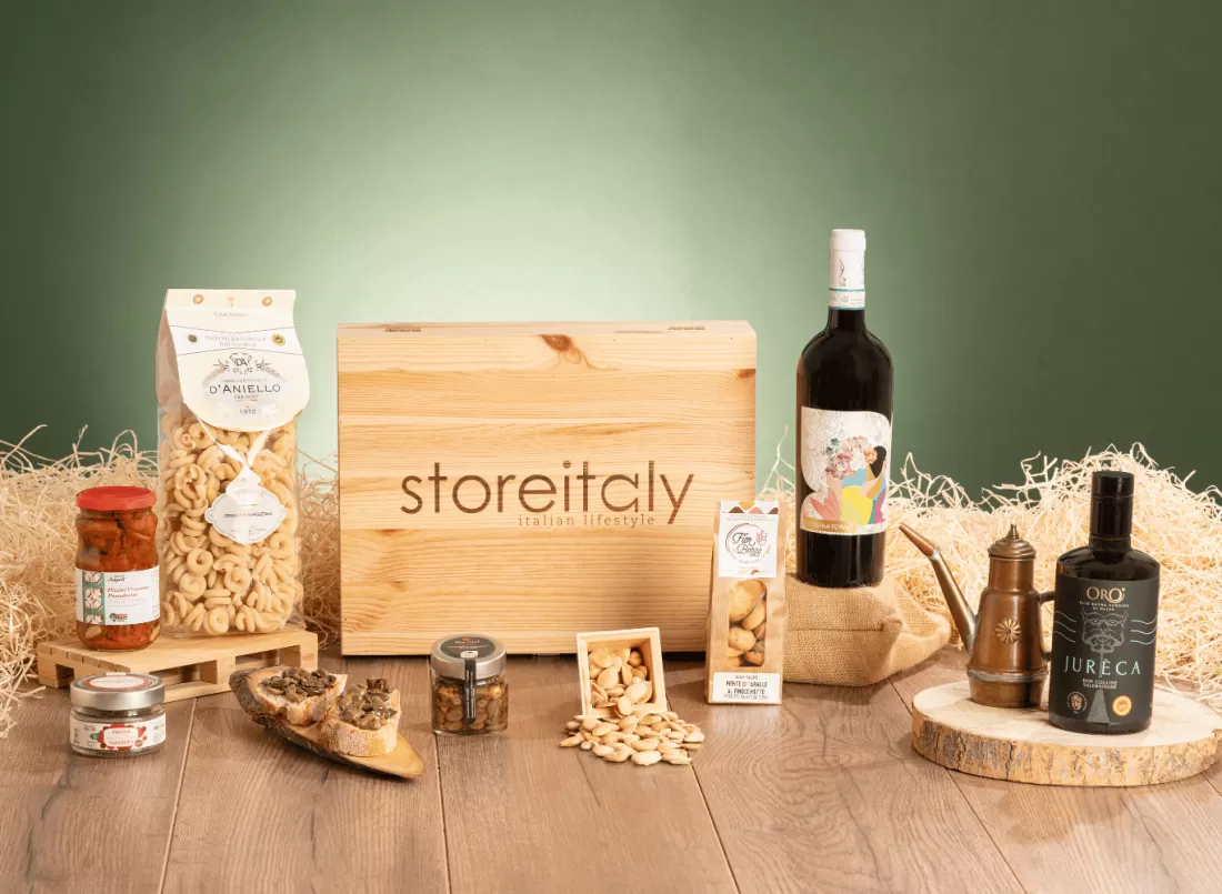 The "Sapori Mediterranei "Hamper is an exclusive gift that brings with it the authentic and unmistakable tastes of the Mediterranean. Perfect for those who want to give a genuine taste experience through a culinary journey with products that evoke the sunny and welcoming atmosphere of the southern lands.