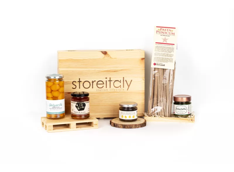From acacia honey to yellow cherry tomatoes, to artisanal pasta and ancient fruit jams, this box tells the story of Italy that cultivates the future every day.