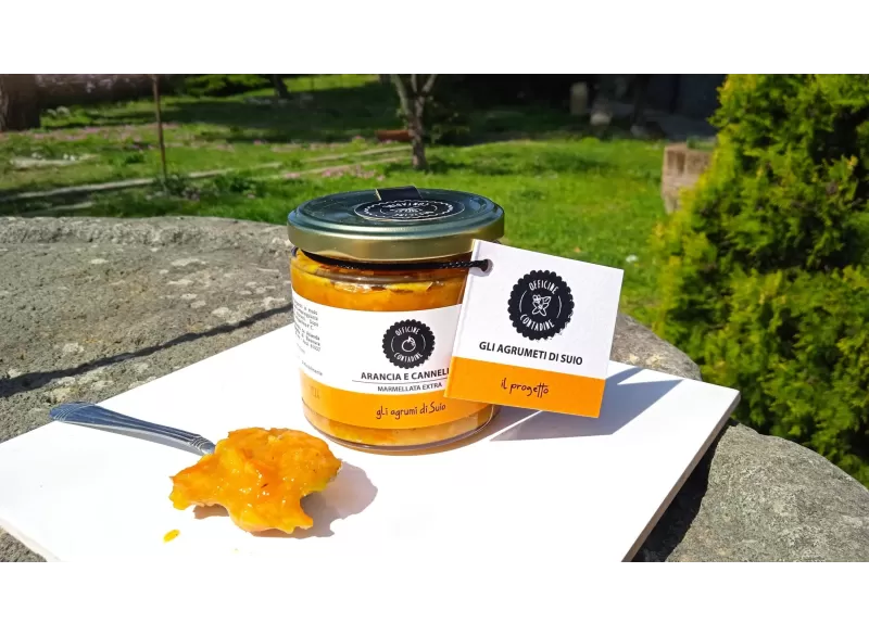 Extra jam of blond oranges from Suio Terme, harvested with the right degree of ripeness and processed with an entirely artisanal method, with a soft consistency and a marked citrus note due to the presence of the finely cut peel.