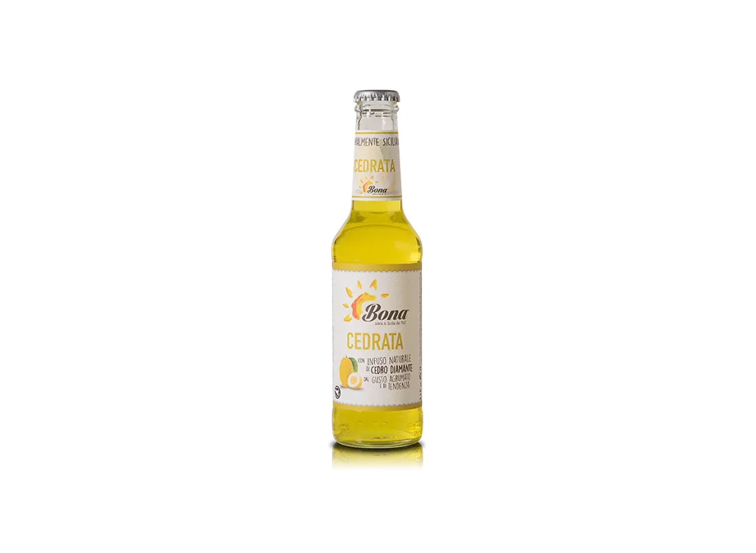 With a vintage character with a trendy and timeless taste. This drink by Bibite Bona has a sweet citrus flavor, fresh and thirst-quenching, it is produced exclusively with natural infusion of diamond variety cedar and shows its unmistakable clear yellow color.
