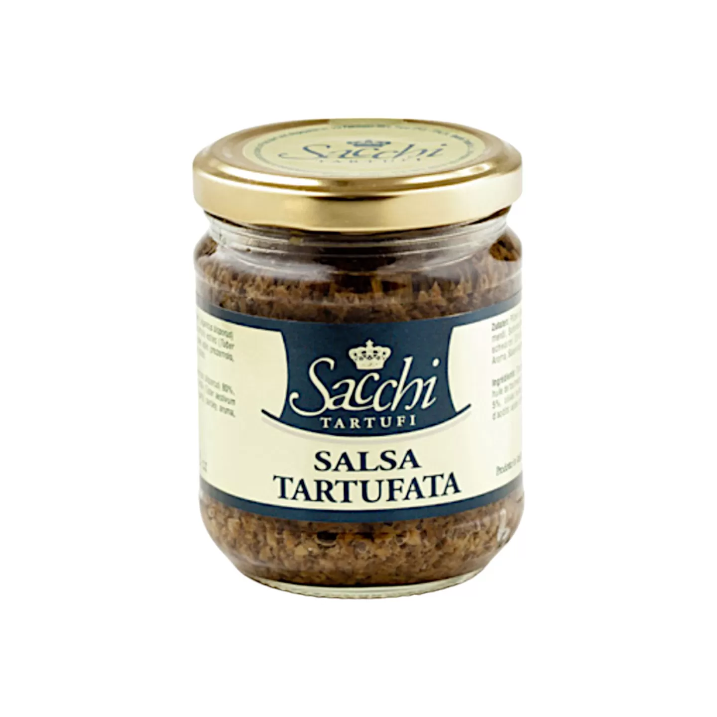 La Salsa Tartufata de Sacchi Tartufi est un assaisonnement exclusif, fabriqué avec des ingrédients de haute qualité et enrichi de 5 % de truffe d'été, connue pour son goût délicat et aromatique. Cette sauce est un parfait équilibre entre les champignons cultivés, l'huile d'olive et la truffe d'été, créant une combinaison unique qui sublime chaque plat.