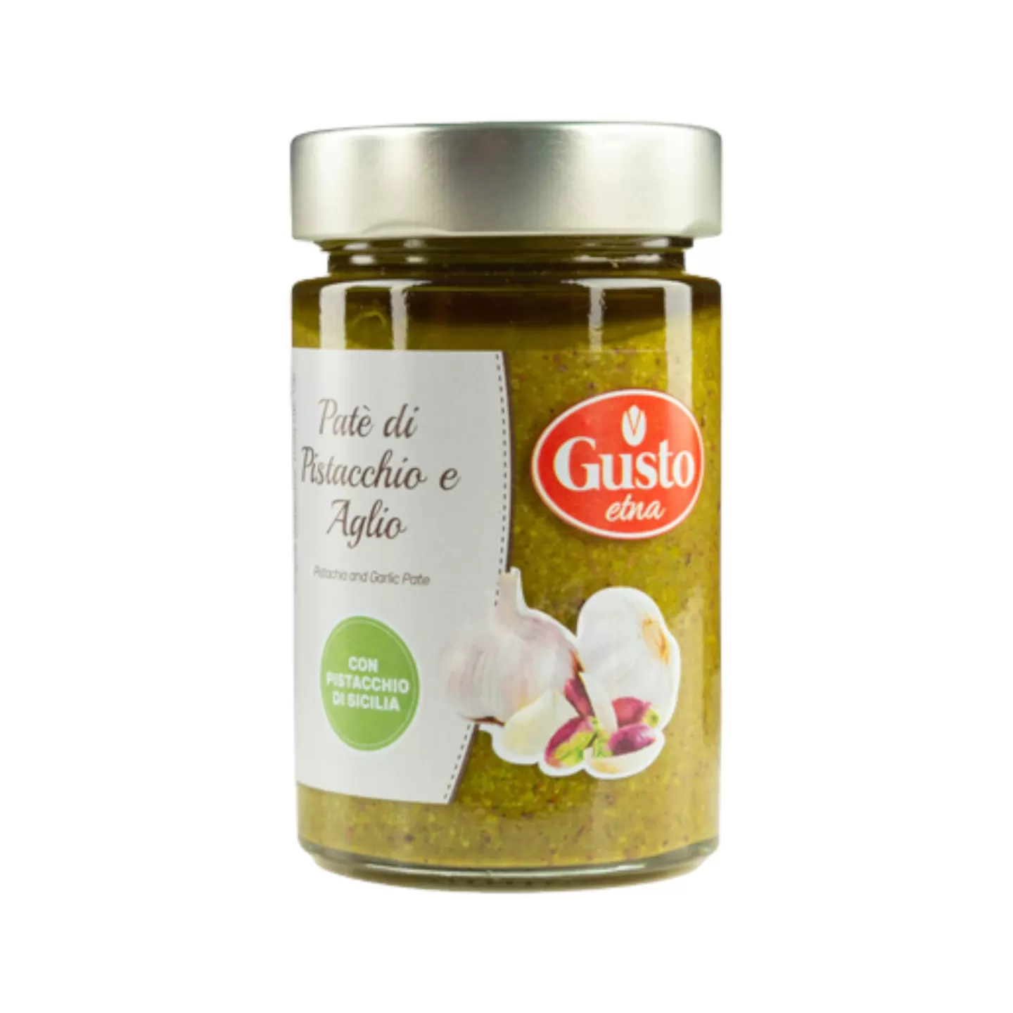Gusto Etna présente une pâte unique qui combine la saveur riche des pistaches siciliennes avec l'arôme intense de l'ail. Parfait pour enrichir des hors-d'œuvres, des bruschettas et des plats gastronomiques. Choisissez cette pâte pour une expérience culinaire authentique et sophistiquée, garantie par la qualité et la tradition sicilienne de Gusto Etna.