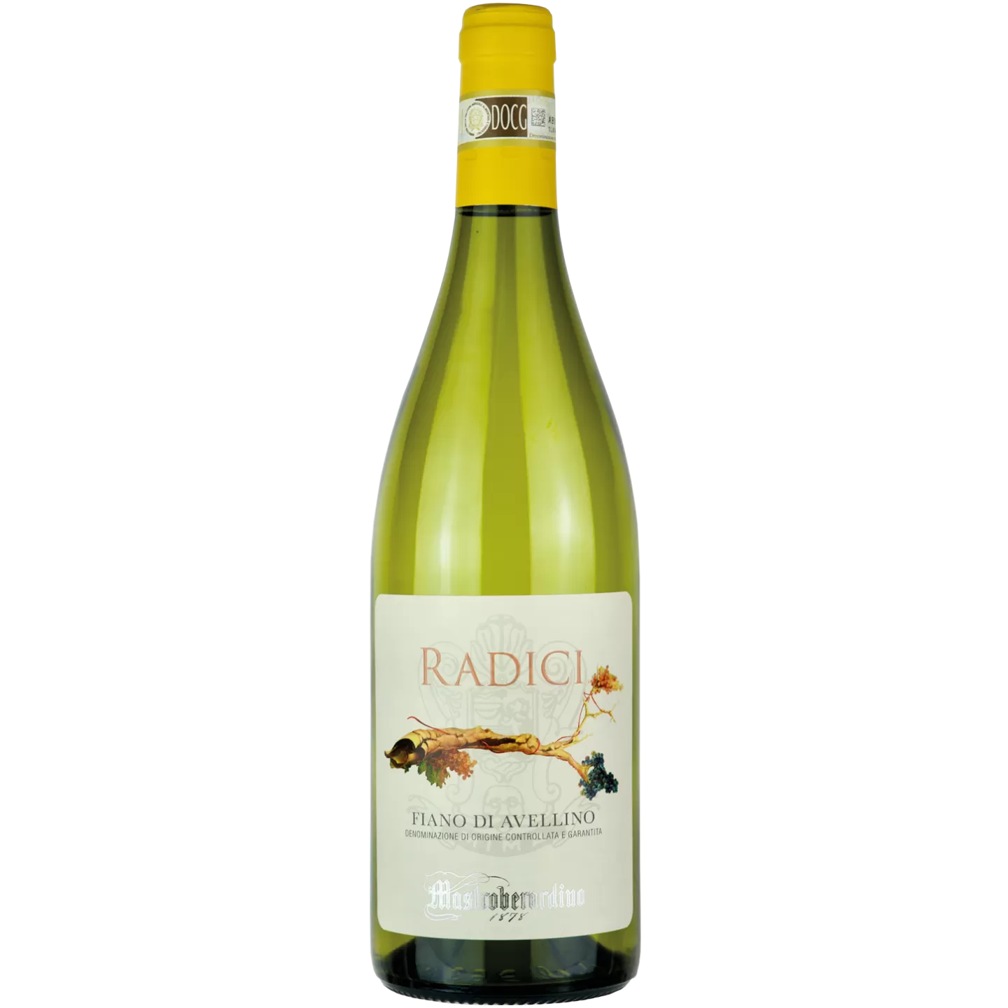 Né d'une recherche attentive et continue pour trouver la meilleure combinaison cépage-terroir, Radici est conçu de manière à ce que la complexité des caractères soit exaltée par une densité inhabituelle pour un vin blanc, lui conférant solidité et épaisseur : un retour aux “racines“. Ce vin est produit dans le domaine de Santo Stefano del Sole, lieu où au début du XVIIIe siècle la famille Mastroberardino a commencé son engagement dans la viticulture. L'étiquette reproduit des traits d'une peinture de Maria Micozzi, réalisée sur un plafond des caves d'affinage de la cave.