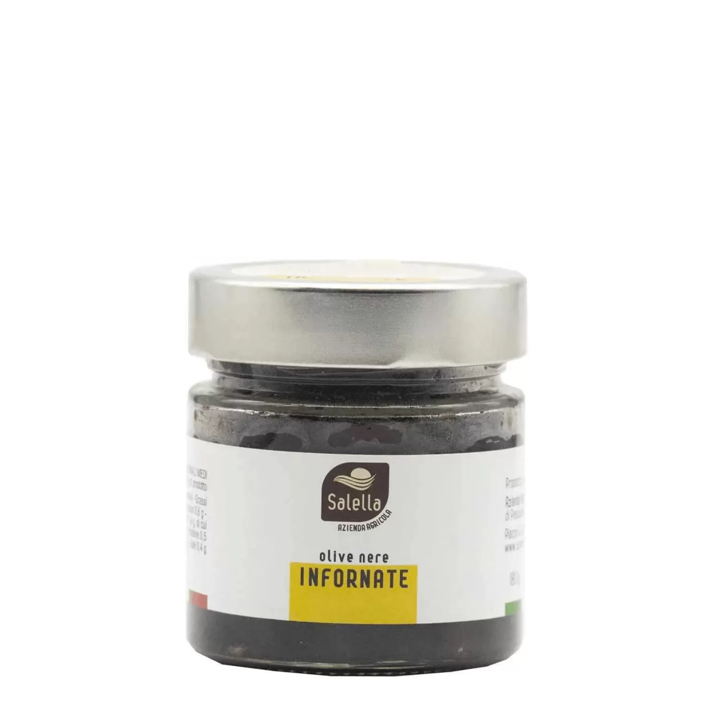 Découvrez l'Oliva Nera del Cilento Infornata Bio, préparée artisanalement par Azienda Agricola Salella. Les olives, mises à cuire dans des séchoirs, sont traitées selon une méthode traditionnelle qui accentue la saveur naturelle du produit.