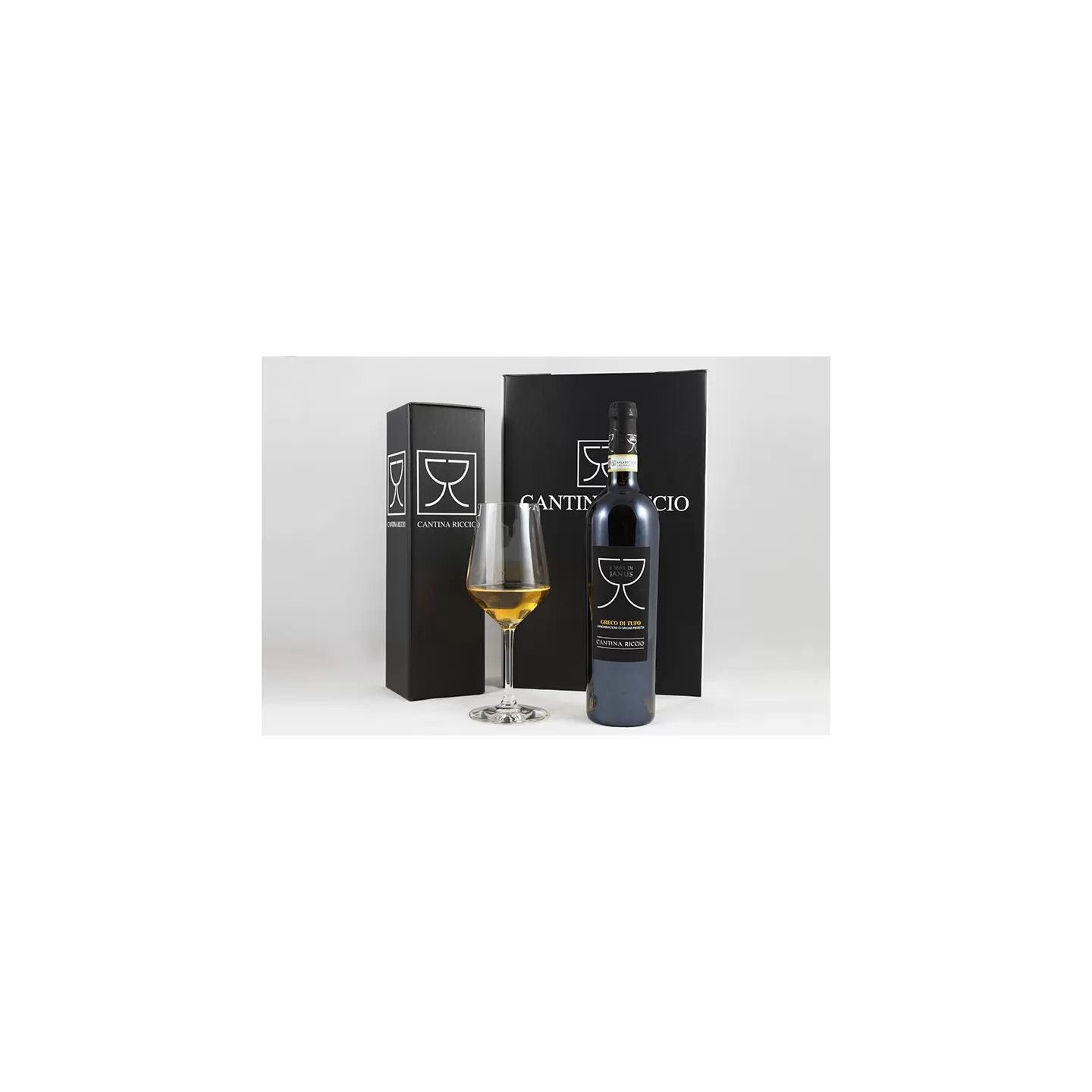 Le vin Greco di Tufo DOCG de Cantina Riccio présente une couleur jaune paille avec des reflets dorés, un parfum intense et persistant aux arômes de pêche blanche, d'abricot et d'amande douce, mélangés à des notes minérales et agrumes, une saveur vigoureuse, fraîche et riche qui décrivent un vin de caractère et de typicité marquée.