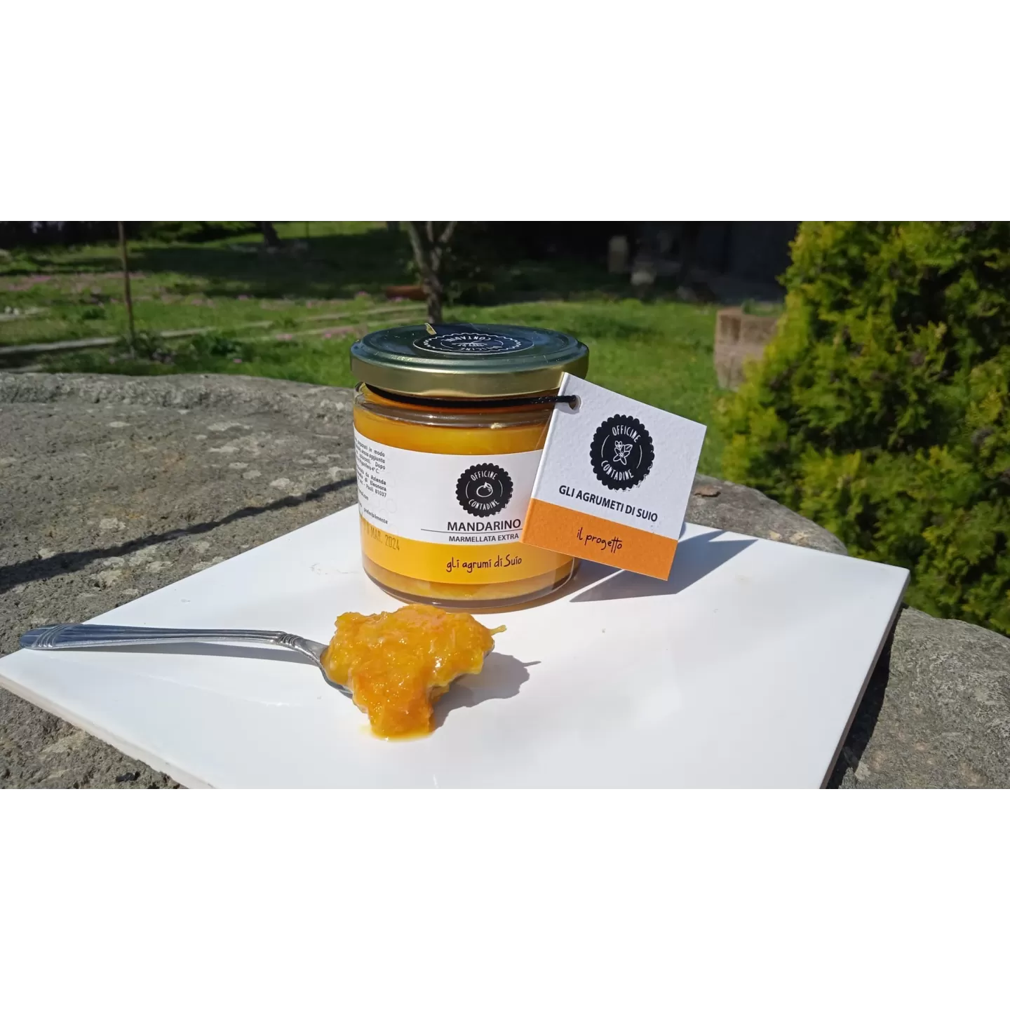 La Confiture de Mandarine de Officine Contadine est une délicieuse conserve faite avec des mandarines fraîches et mûres, cueillies à leur juste point de douceur.