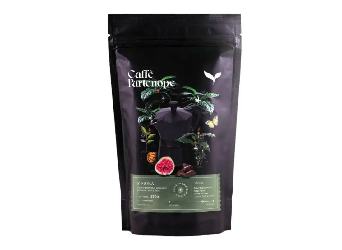 A’ moka – Café moulu artisanal pour moka ou espresso représente la plus haute expression de la tradition napolitaine, créée par les experts de l'équipe Caffè Partenope. Réalisé en sélectionnant les meilleurs grains (origines : Columbia supremo, Kaapi Royale, Santos Cerrado & Uganda Cr 18 Selected), A'Moka se distingue par ses arômes nets et ses notes aromatiques prononcées de chocolat noir, de noix et de figues. Vous serez étonné par sa rondeur corporelle et sa crème inoubliable.