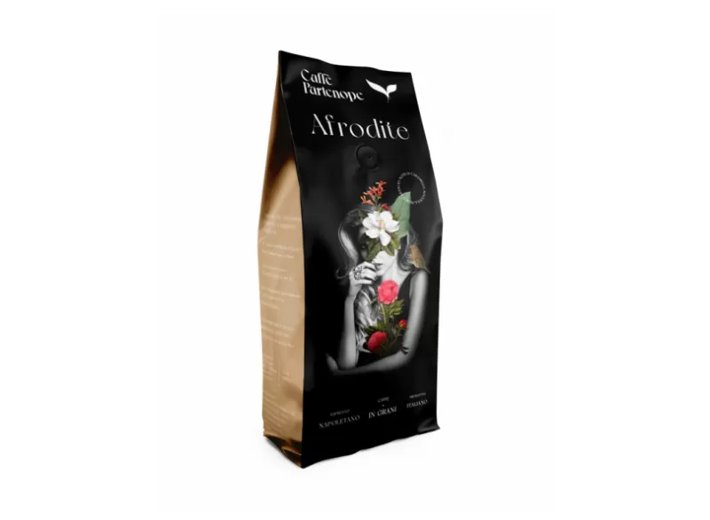 Afrodite: mélange de café pour espresso italien composé de 7 origines différentes d'arabica, finement mixé, qui conserve sa qualité depuis plus de quarante ans, se caractérisant par un arôme intense, un goût doux, avec des notes de caramel, noisette et fleur d'oranger, avec des nuances de cacao et de terre.