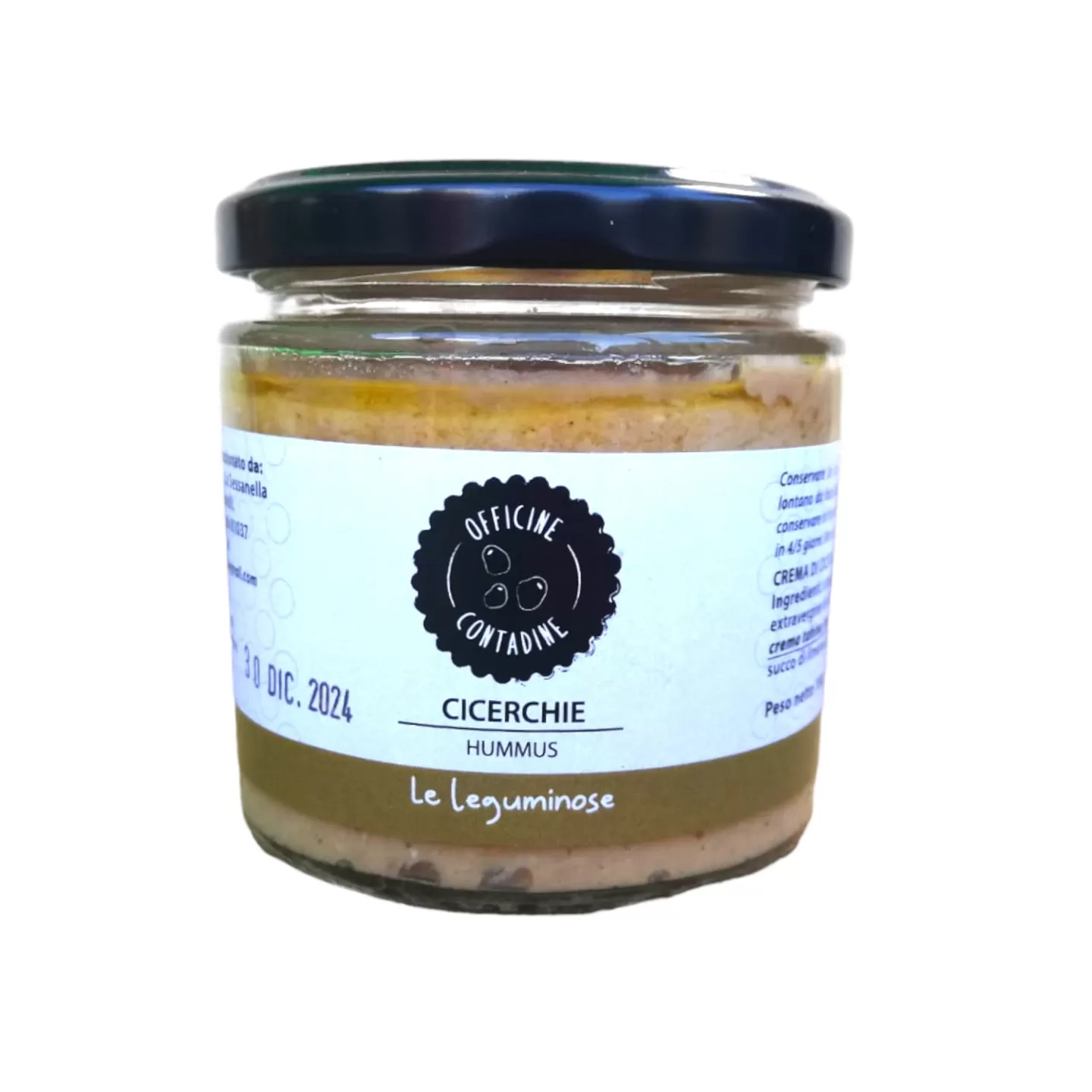 L'Hummus di Cicerchie di Officine Contadine è una crema gustosa e nutriente preparata con cicerchie italiane selezionate, olio extravergine di oliva e ingredienti naturali.