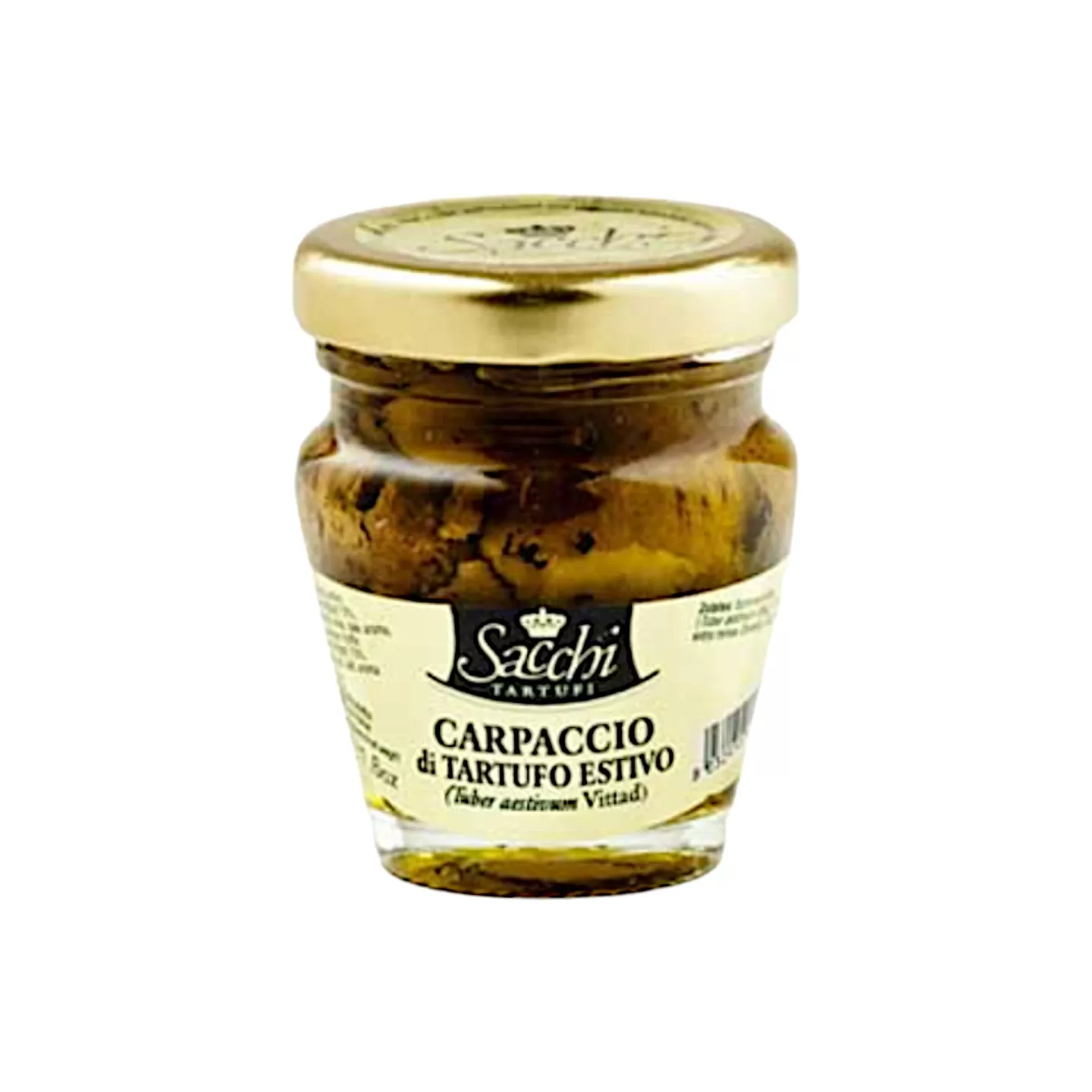 Il Carpaccio di Tartufo Estivo di Sacchi Tartufi è un'esclusiva selezione di lamelle sottili di tartufo estivo, raccolto nelle zone più vocate d’Italia. Queste lamelle, immerse in olio extravergine di oliva, mantengono intatto l'aroma inconfondibile e il sapore delicato del tartufo estivo, rendendolo un ingrediente ideale per arricchire una vasta gamma di piatti.