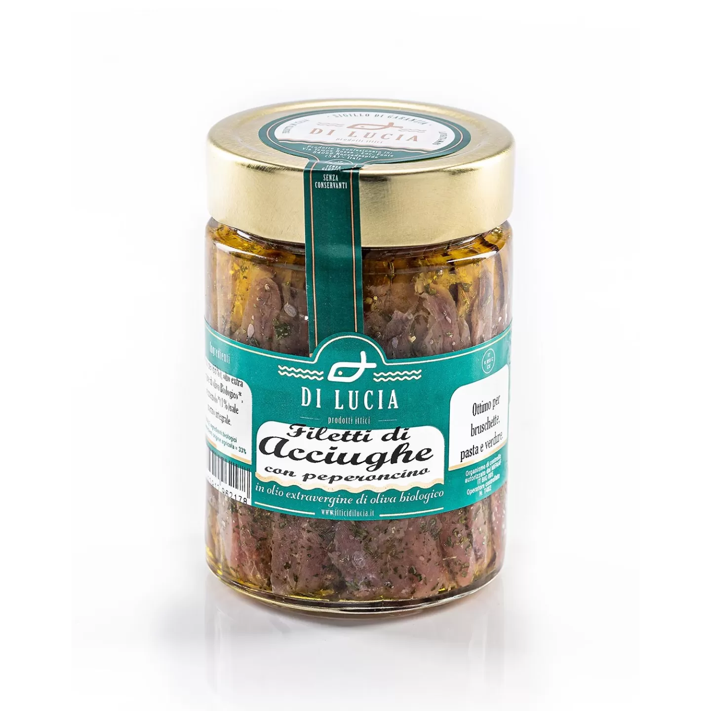 Scopri i Filetti di Acciughe con Peperoncino in Olio EVO Bio di Ittici Di Lucia, conservati in olio extravergine di oliva e peperoncino per garantire il massimo della qualità e del sapore.