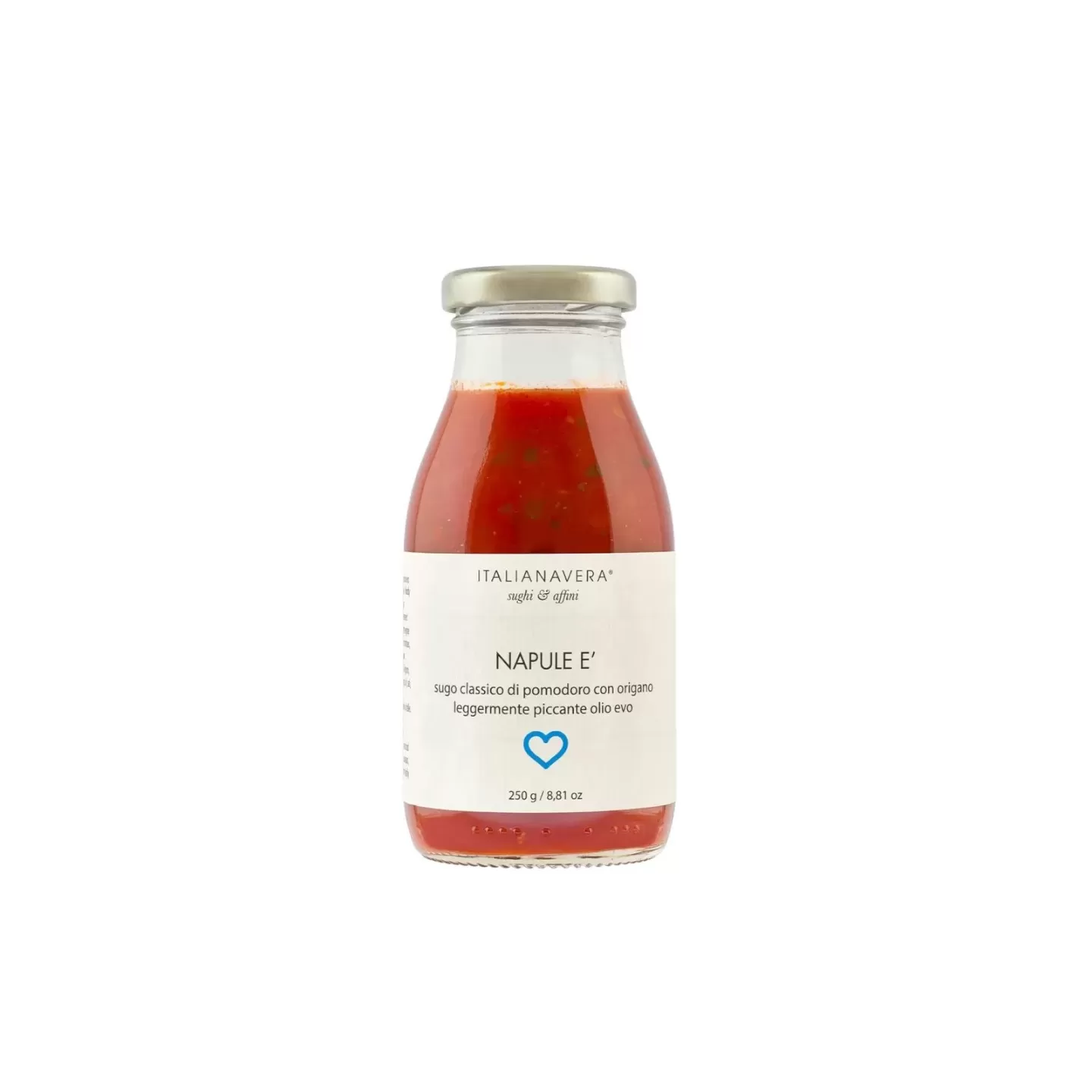 Sugo classico di pomodoro con origano leggermente piccante in olio evo.