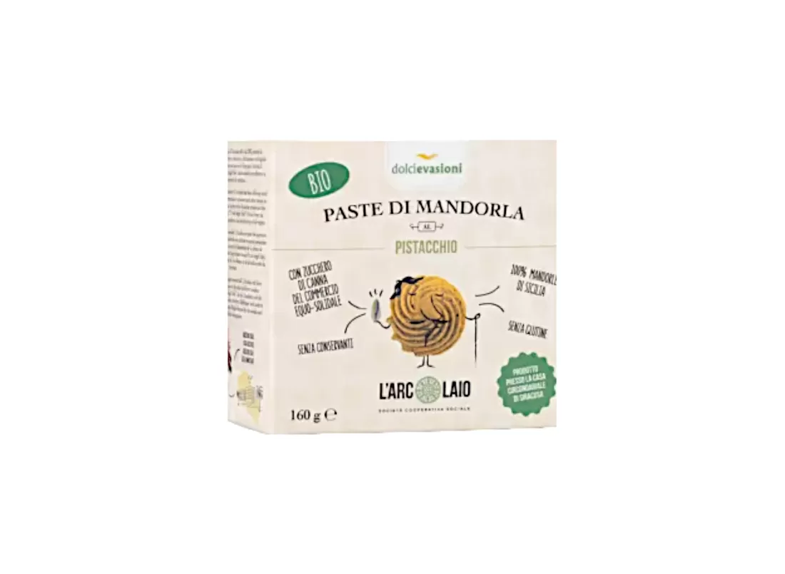 La Pasta di Mandorle al Pistacchio Bio della Cooperativa Sociale L'Arcolaio è un dolce artigianale dal sapore intenso e raffinato, perfetto per chi desidera gustare un prodotto autentico della tradizione siciliana.