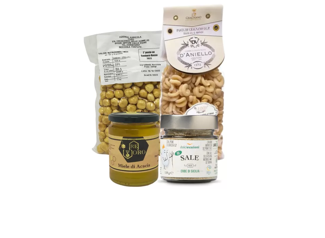 Scoprite con Storeitaly la nostra esclusiva Box Ricetta, ideale per gli amanti della cucina italiana. Al suo interno troverete tutto il necessario per preparare un irresistibile piatto di Orecchie Napoletane Con Nocciole, Miele e Pecorino. Ogni ingrediente è stato selezionato con cura per garantire la qualità del MADE IN ITALY. Un viaggio gastronomico che porta la tradizione italiana direttamente a casa vostra